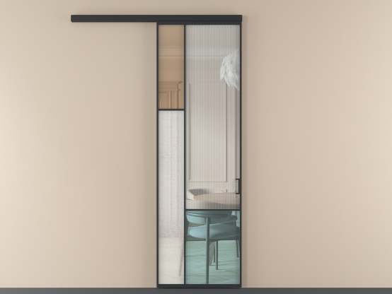 Во всех алюминиевых перегородках, независимо от типа установки, используется компланарный раздвижной механизм, благодаря которому декоративная крышка и полотно находятся в одной плоскости.