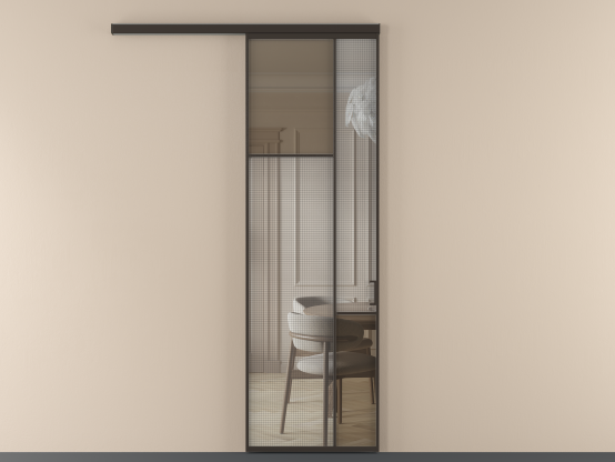 Во всех алюминиевых перегородках, независимо от типа установки, используется компланарный раздвижной механизм, благодаря которому декоративная крышка и полотно находятся в одной плоскости.