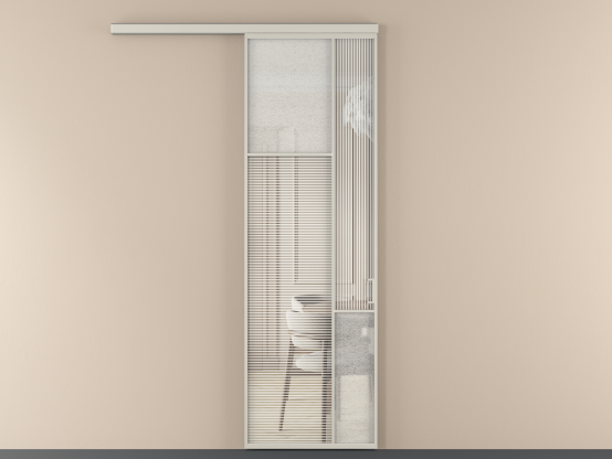 Во всех алюминиевых перегородках, независимо от типа установки, используется компланарный раздвижной механизм, благодаря которому декоративная крышка и полотно находятся в одной плоскости.