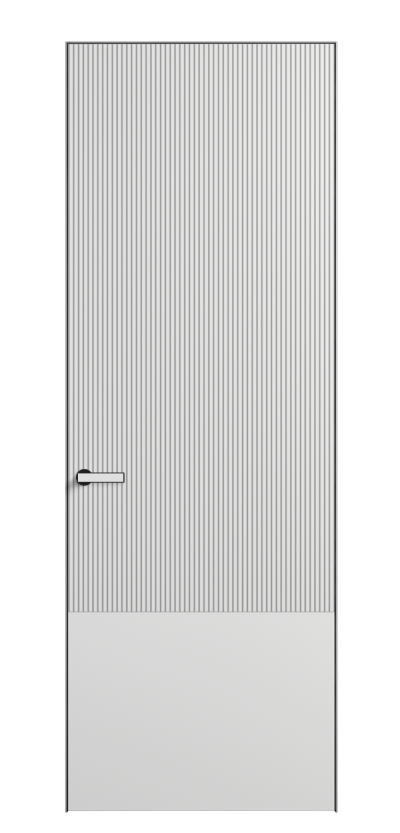 Это полотна с рельефной фрезеровкой. Этот прием делает интерьер объемным, тактильным, вносит интересную текстуру и создает современный образ. Волнистый рельеф может быть выполнен по ламелям из массива дуба в древесных матовых отделках, либо исполнен по натуральному и экологически безопасному материалу — ХДФ, покрытому гладкой эмалью актуальных оттенков.