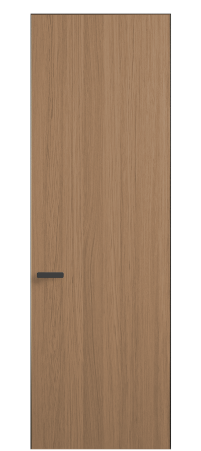 Полотно Rift в скрытом алюминиевом коробе становится полноценным элементом декора. В коллекции представлено 9 моделей дверей в высоте до 3 метров. Рисунок раскладки шпона варьируется от простого до сложного. «Рубашка» для каждого полотна подбирается вручную по цвету, текстуре и фактуре.
