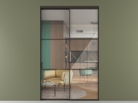 Алюминиевые перегородки имеют единый профиль с алюминиевыми дверьми и легко сочетаются в одном пространстве, не перегружая его. Также их можно комбинировать в интерьере с полотнами из нашего стандартного ассортимента. Помимо этого, система алюминиевых перегородок и дверей координируется со стеновыми панелями Волховец.