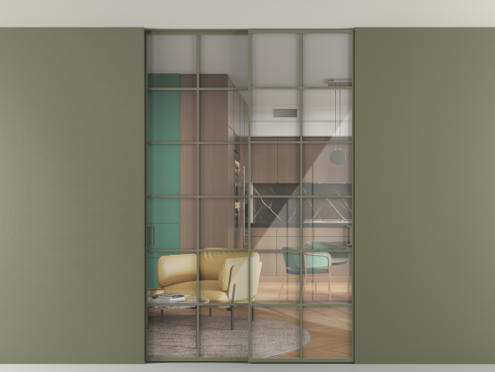 Алюминиевые перегородки имеют единый профиль с алюминиевыми дверьми и легко сочетаются в одном пространстве, не перегружая его. Также их можно комбинировать в интерьере с полотнами из нашего стандартного ассортимента. Помимо этого, система алюминиевых перегородок и дверей координируется со стеновыми панелями Волховец.