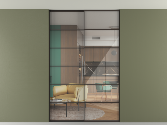 Алюминиевые перегородки имеют единый профиль с алюминиевыми дверьми и легко сочетаются в одном пространстве, не перегружая его. Также их можно комбинировать в интерьере с полотнами из нашего стандартного ассортимента. Помимо этого, система алюминиевых перегородок и дверей координируется со стеновыми панелями Волховец.