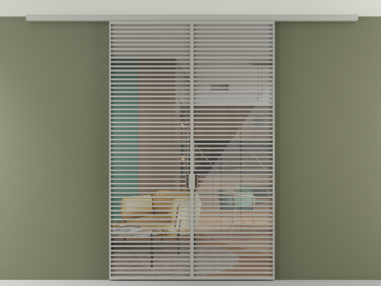 Во всех алюминиевых перегородках, независимо от типа установки, используется компланарный раздвижной механизм, благодаря которому декоративная крышка и полотно находятся в одной плоскости.