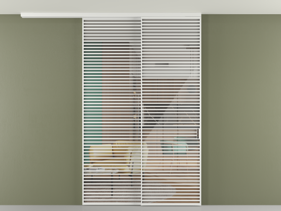 Дополнительно на раздвижную двустворчатую перегородку вдоль стены и четырёхстворчатую перегородку внутри проёма с двумя неподвижным полотнами можно установить механизм синхронного открывания — при открывании одной створки, вторая открывается автоматически.