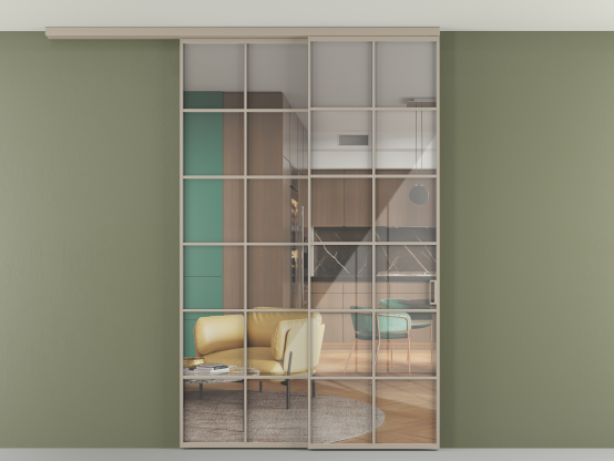 Алюминиевые перегородки имеют единый профиль с алюминиевыми дверьми и легко сочетаются в одном пространстве, не перегружая его. Также их можно комбинировать в интерьере с полотнами из нашего стандартного ассортимента. Помимо этого, система алюминиевых перегородок и дверей координируется со стеновыми панелями Волховец.