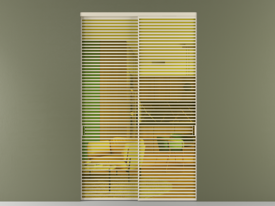 Дополнительно на раздвижную двустворчатую перегородку вдоль стены и четырёхстворчатую перегородку внутри проёма с двумя неподвижным полотнами можно установить механизм синхронного открывания — при открывании одной створки, вторая открывается автоматически.