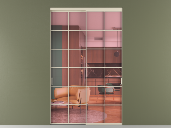 Алюминиевые перегородки имеют единый профиль с алюминиевыми дверьми и легко сочетаются в одном пространстве, не перегружая его. Также их можно комбинировать в интерьере с полотнами из нашего стандартного ассортимента. Помимо этого, система алюминиевых перегородок и дверей координируется со стеновыми панелями Волховец.