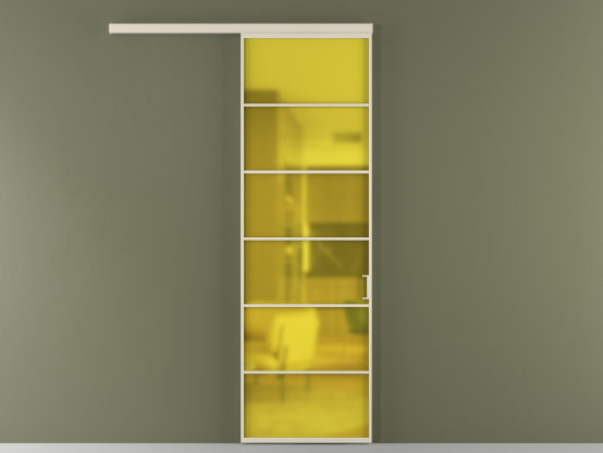 АЛПР 040.04. Алюминий бежево-серый Сатинированное жёлтое стекло, триплекс, 6мм