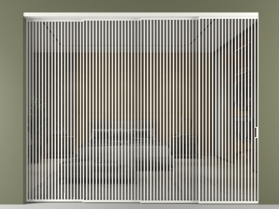 Дополнительно на раздвижную двустворчатую перегородку вдоль стены и четырёхстворчатую перегородку внутри проёма с двумя неподвижным полотнами можно установить механизм синхронного открывания — при открывании одной створки, вторая открывается автоматически.