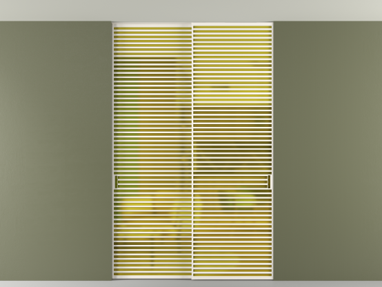 Дополнительно на раздвижную двустворчатую перегородку вдоль стены и четырёхстворчатую перегородку внутри проёма с двумя неподвижным полотнами можно установить механизм синхронного открывания — при открывании одной створки, вторая открывается автоматически.