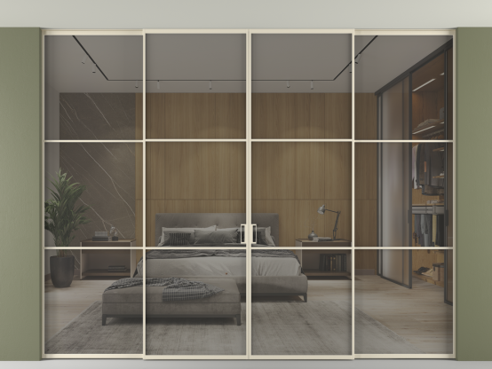 Алюминиевые перегородки имеют единый профиль с алюминиевыми дверьми и легко сочетаются в одном пространстве, не перегружая его. Также их можно комбинировать в интерьере с полотнами из нашего стандартного ассортимента. Помимо этого, система алюминиевых перегородок и дверей координируется со стеновыми панелями Волховец.