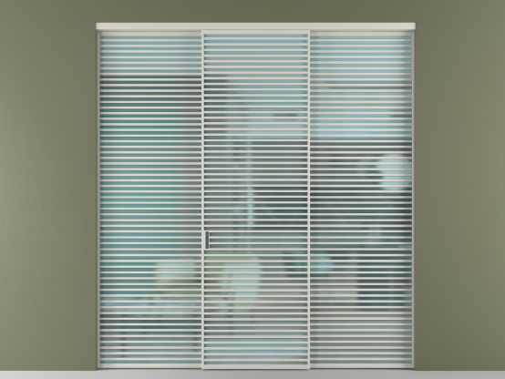Дополнительно на раздвижную двустворчатую перегородку вдоль стены и четырёхстворчатую перегородку внутри проёма с двумя неподвижным полотнами можно установить механизм синхронного открывания — при открывании одной створки, вторая открывается автоматически.