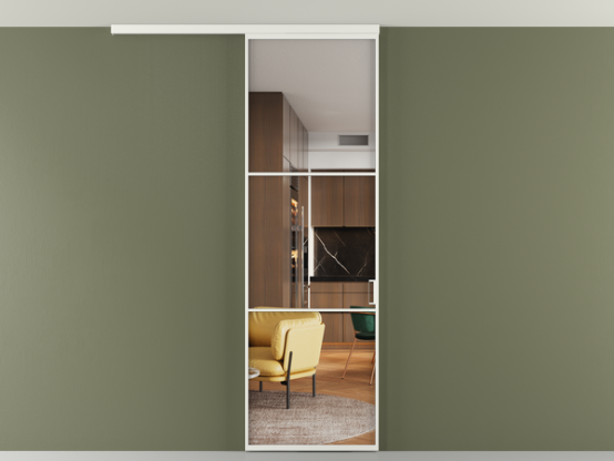 Во всех алюминиевых перегородках, независимо от типа установки, используется компланарный раздвижной механизм, благодаря которому декоративная крышка и полотно находятся в одной плоскости.