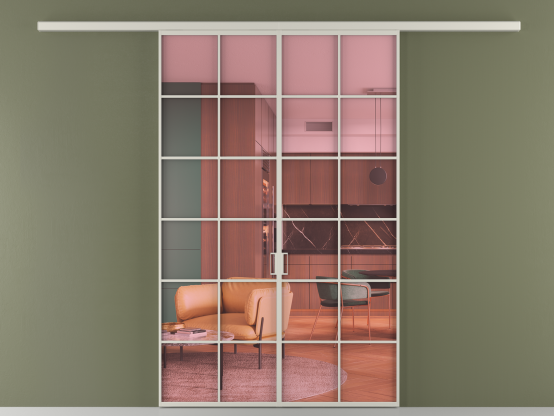 Алюминиевые перегородки имеют единый профиль с алюминиевыми дверьми и легко сочетаются в одном пространстве, не перегружая его. Также их можно комбинировать в интерьере с полотнами из нашего стандартного ассортимента. Помимо этого, система алюминиевых перегородок и дверей координируется со стеновыми панелями Волховец.