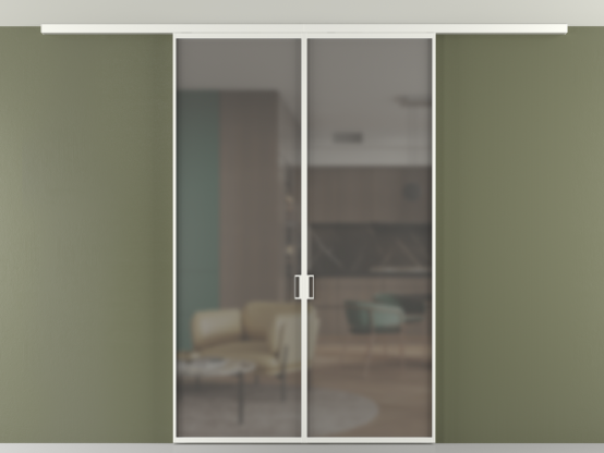Дополнительно на раздвижную двустворчатую перегородку вдоль стены и четырёхстворчатую перегородку внутри проёма с двумя неподвижным полотнами можно установить механизм синхронного открывания — при открывании одной створки, вторая открывается автоматически.