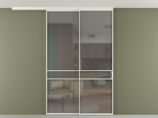 Во всех алюминиевых перегородках, независимо от типа установки, используется компланарный раздвижной механизм, благодаря которому декоративная крышка и полотно находятся в одной плоскости.