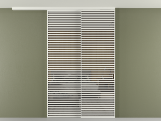 Перегородка Формато вдоль стены на потолок 2 створки с синхронным механизмом