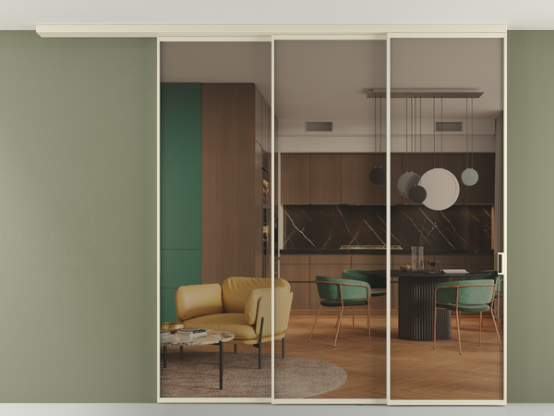 Алюминиевые перегородки имеют единый профиль с алюминиевыми дверьми и легко сочетаются в одном пространстве, не перегружая его. Также их можно комбинировать в интерьере с полотнами из нашего стандартного ассортимента. Помимо этого, система алюминиевых перегородок и дверей координируется со стеновыми панелями Волховец.