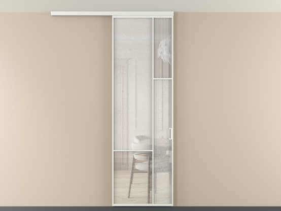 Во всех алюминиевых перегородках, независимо от типа установки, используется компланарный раздвижной механизм, благодаря которому декоративная крышка и полотно находятся в одной плоскости.