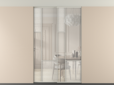 Во всех алюминиевых перегородках, независимо от типа установки, используется компланарный раздвижной механизм, благодаря которому декоративная крышка и полотно находятся в одной плоскости.