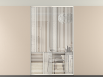 Во всех алюминиевых перегородках, независимо от типа установки, используется компланарный раздвижной механизм, благодаря которому декоративная крышка и полотно находятся в одной плоскости.